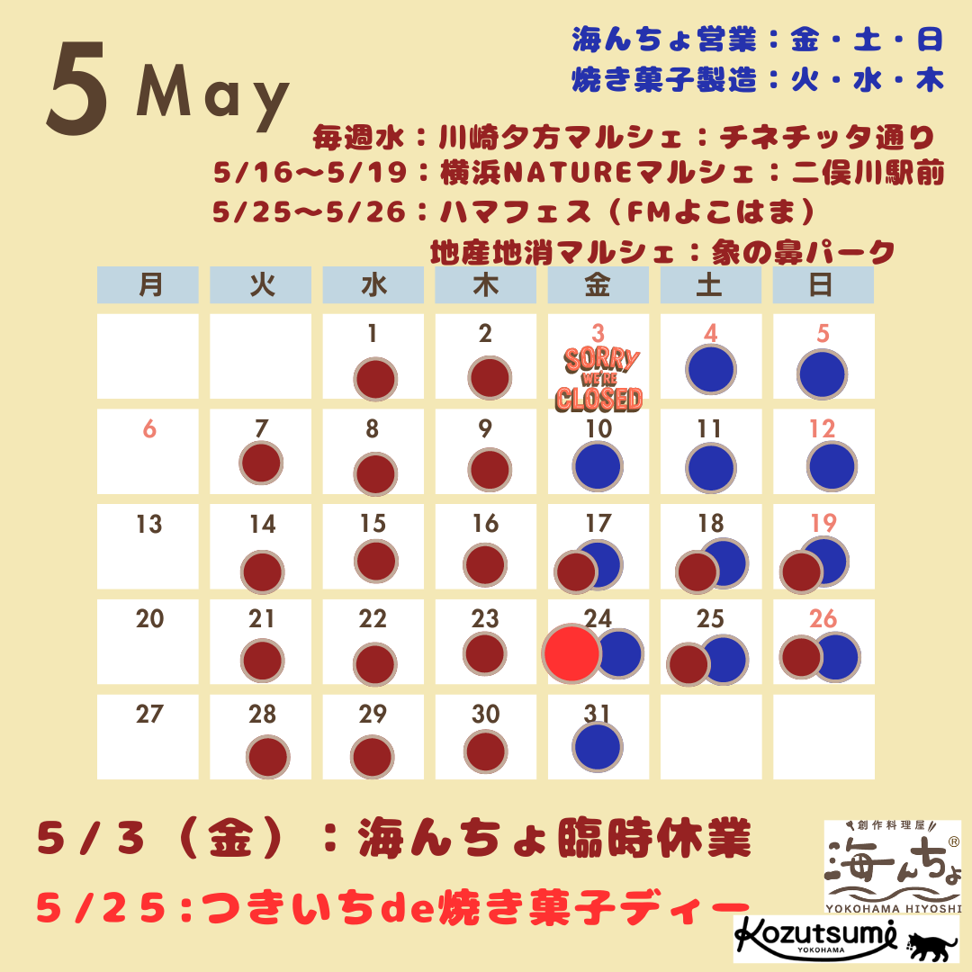 【修正あり】5月のスケジュールです!|店内販売&マルシェ販売